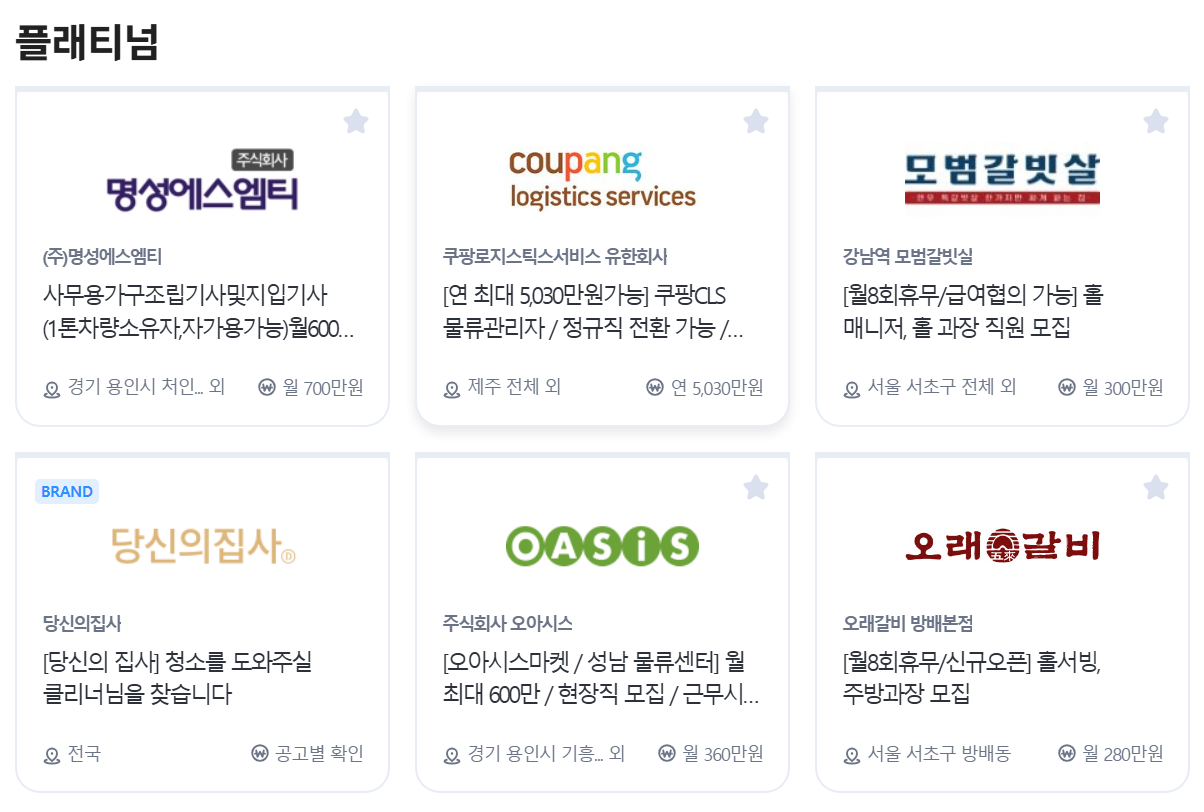 - 이력서 등록 및 지원: 1분 이력서 등록 후 온라인 지원